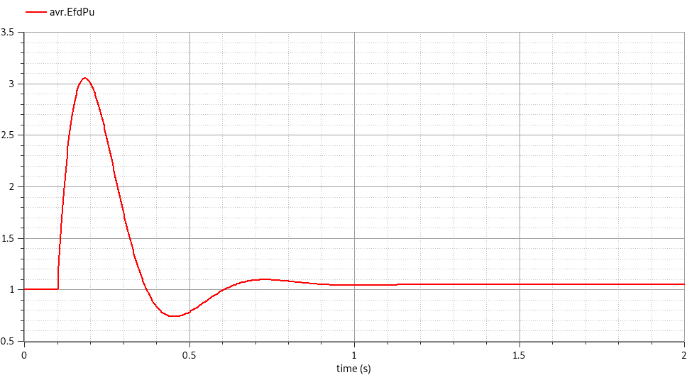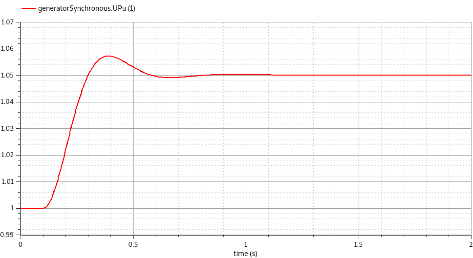 reference value (+ 0.05 pu) done at t = 0.1 s.