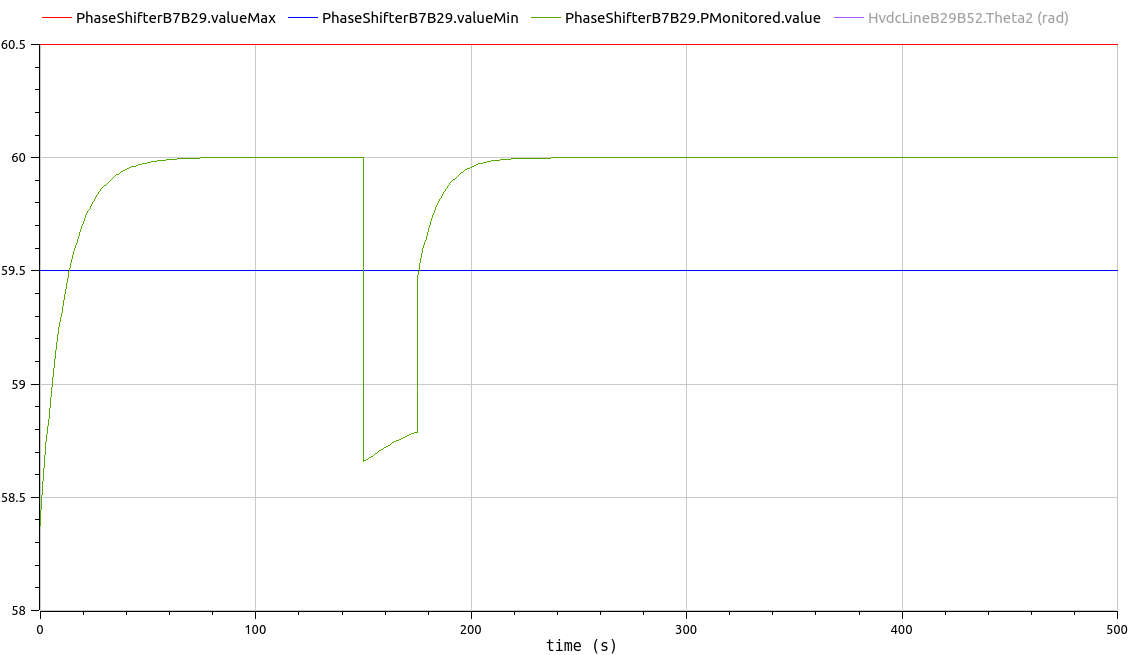 At t = 150 s, the lineB29B52 is disconnected. It means that