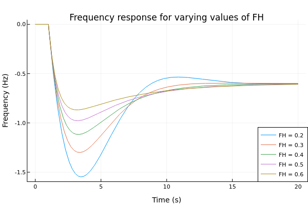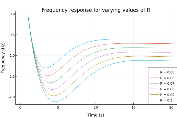 The results for different variations of active power, governor
