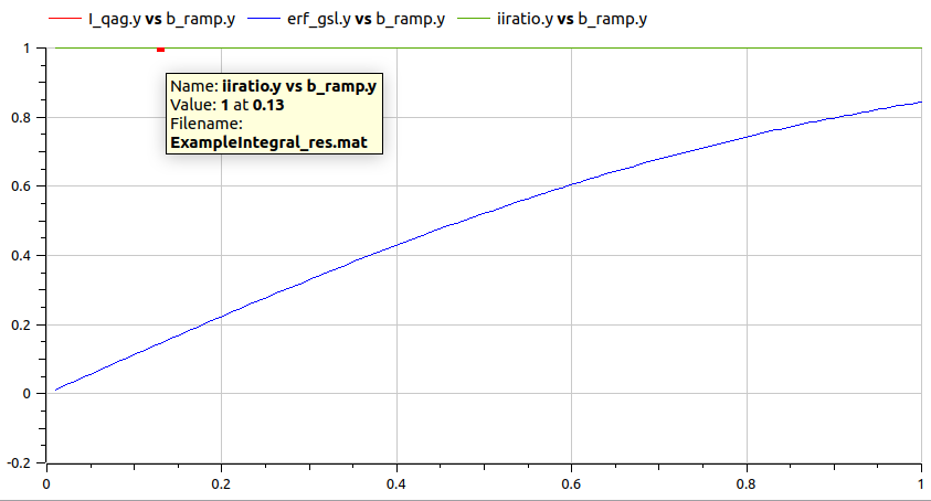 result: erf(b). Several values of b from 0.01 to 1 are explored and