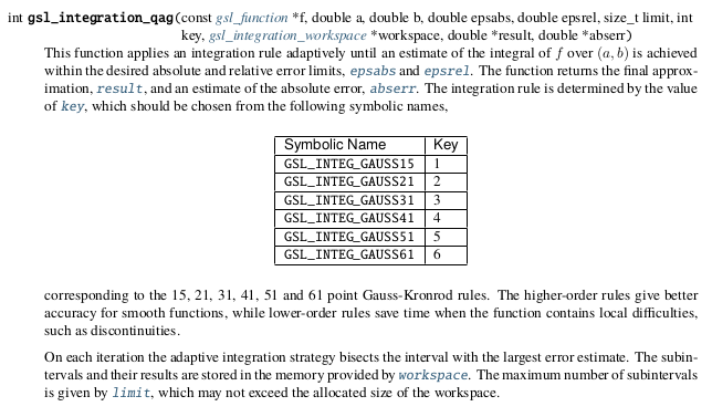 function qag extends Modelica.Icons.Function; input Integer n_par; input Real par[n_par], a, b, rel_err; input Integer limit, key; output Real y, err; end qag;