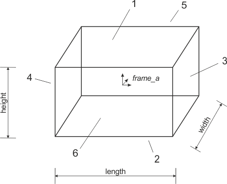 This model defines a cuboid body that can collide with every surface. Contact surfaces can be enabled seperately. The enumeration corresponds to the chosen directions and dimensions and is displayed in the Figure.