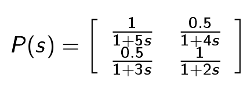 Two inputs Two outputs process Y1 = P11*u1 + P12*u2 and Y2 = P21*u1 + P22*u2 |