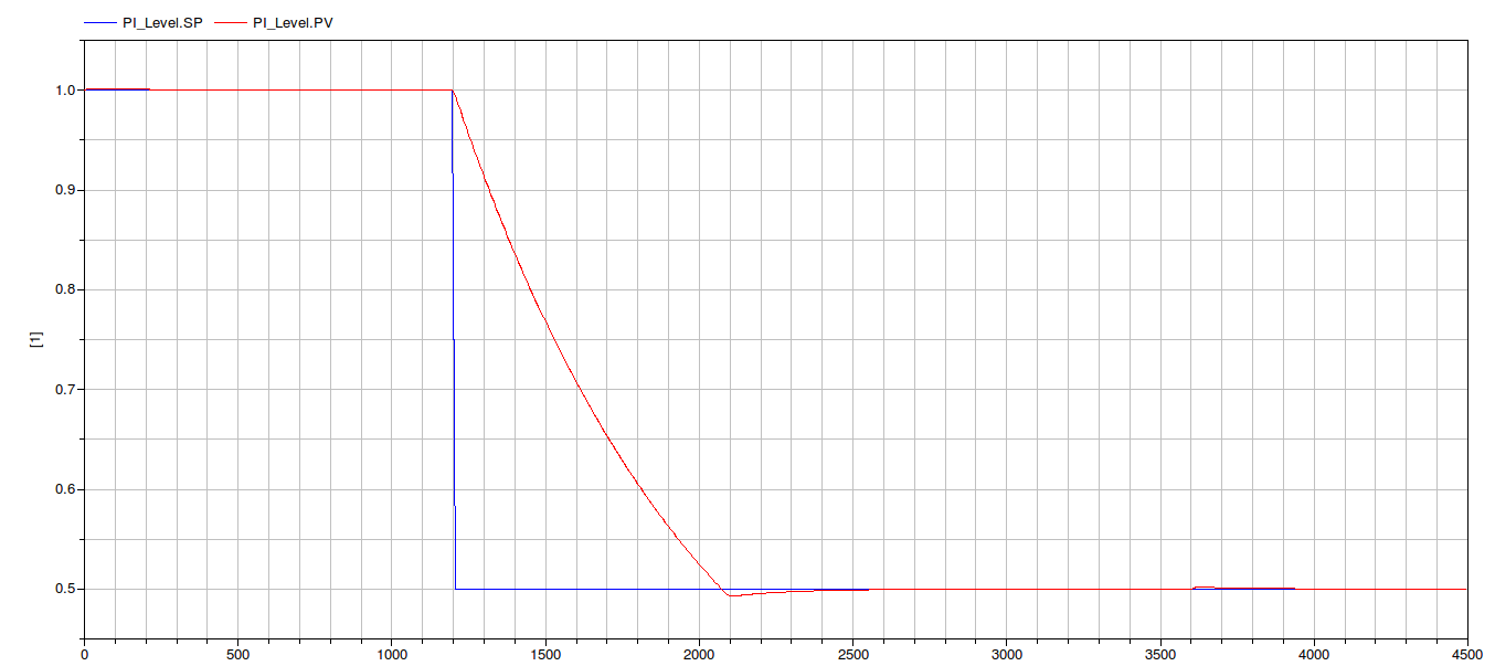decrease as a step (SP = 0.5 m). The controller has to act on the