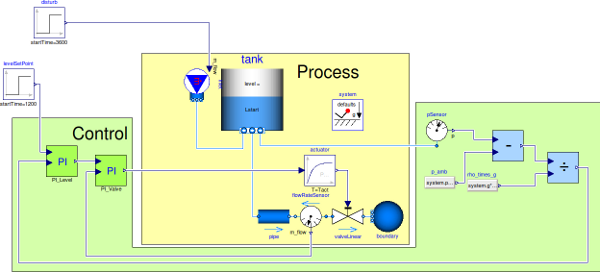 Level control with two PI controllers, connected with a cascade