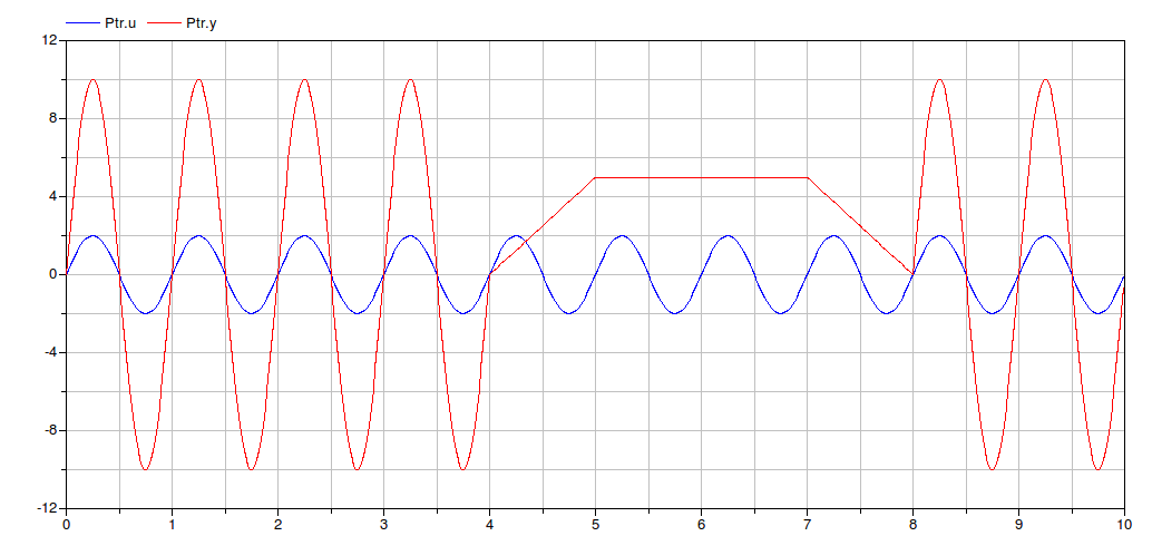 proportional controller, with a sine wave as input u.