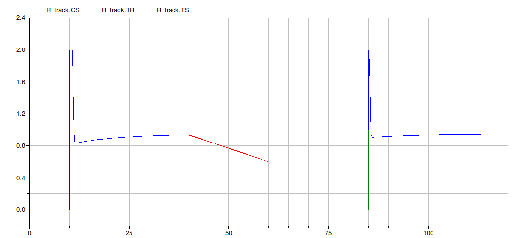 The CS of the controller becomes equal to the track reference