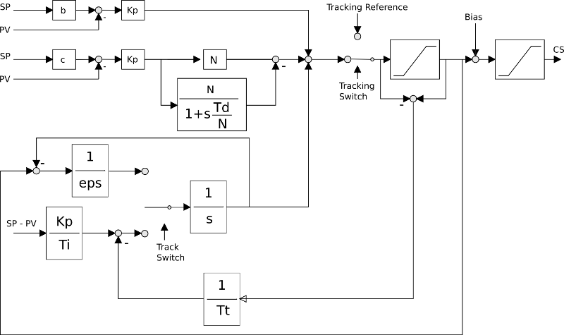 CS(s) = Kp[ (bSP(s) - PV(s)) + ----- (SP(s) - PV(S)) + -----------(cSP(s) - PV(s)) ]