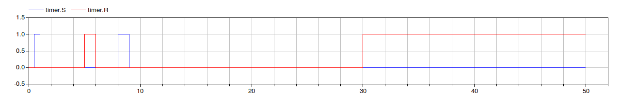 OFF delay timer model, active on falling edge