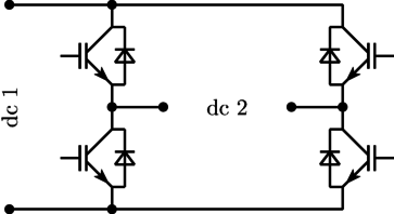The H bridge is a four quadrant DC/DC converter. It consists of two single-phase DC/AC converters which are controlled differently; see Fig. 1.
