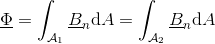 The magnetic flux entering, and leaving a flux tube, respectively, is determined by the surface integral of the normal component of the magnetic field strength: