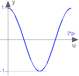 This function returns y = cos(u), with -∞ < u < ∞: