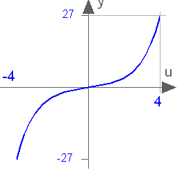 This function returns y = sinh(u), with -∞ < u < ∞: