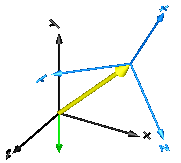 In the following figure the animation of an AbsoluteSensor component is shown. The light blue coordinate system is frame_a and the yellow arrow is the animated sensor.