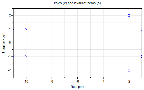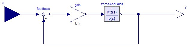 This model consists of a linear, time invariant single-input, single-output plant "zerosAndPoles" that is controlled by a P-Controller with a constant gain k. The pole/zero pattern of the plant is shown in the next figure: