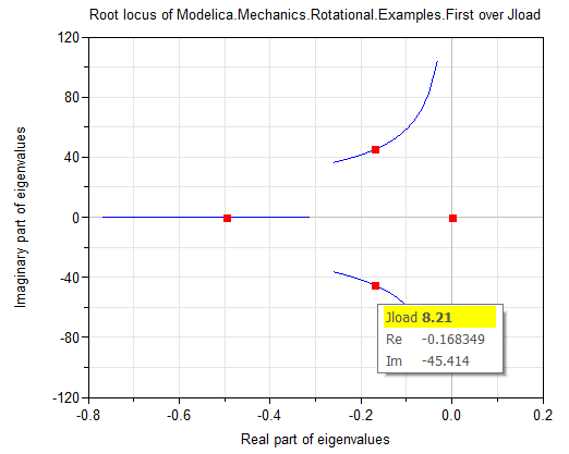 This function plots the root locus of model Rotational.Examples.First over the load inertia Jload: