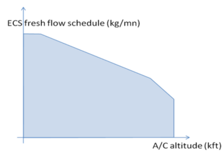 The fresh airflow entering the pressurized area (including air dedicated to equipment cooling) shall be within the domain described by the following figure: