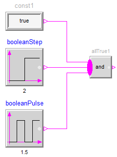 The input connector is a vector of Boolean input signals. When a connection line is drawn, the dimension of the input vector is enlarged by one and the connection is automatically connected to this new free index (thanks to the connectorSizing annotation).