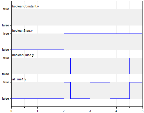 If no connection to the input connector "u" is present, the output is set to: y=false.