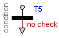Parameter setting Icon Description Default transition The transition fires when the preceding step is active and the expression "condition" in the parameter menu is true. use_conditionPort = true The transition fires when the preceding step is active and connector "conditionPort" is true. delayedTransition = true The transition fires after the delay time "waitTime" (here: 1.23 s), if the preceding step was active, and "condition = true" during the entire delay time. use_firePort = true Connector "firePort" is true when the transition fires. Actions may be triggered, e.g., by connecting block MultiSwitch to the firePort. loopCheck = false