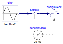 example samples a sine signal with a periodic clock of 20 ms