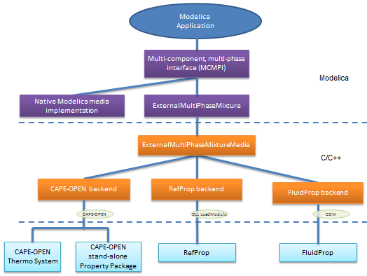 MultiPhaseMixture is a library for multi-phase multi-component fluids. It uses a model based interface which is in line with the Modelica spirit of equation based modelling. The model based interface makes it possible to implement a thermo property model using a declarative approach. The library has an interface to the C-interface externalMultiPhaseMixture which makes it possible to use properties from an external property package.