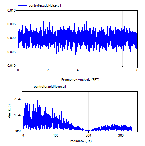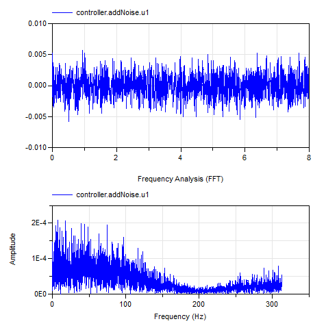 The time and frequency domain plot of the linearsystems noise