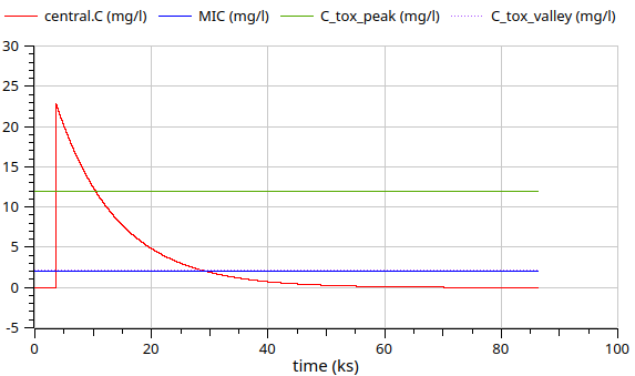 Simulation of 24h, drug administered at 1h: