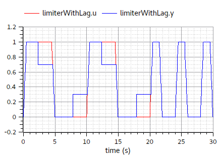 The model demonstrate the corerct behavior of the LimiterWithLag.