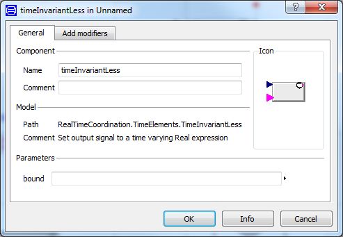 An invariant is an inequation that specifies an upper bound on a clock, e.g., c < 2 or c <= 2 where c is a Clock. Invariants are assigned to generalized steps and are used to specify a time span in which this generalized step is allowed to be active.