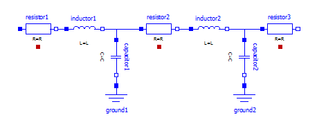 In the figure, it is given an example of the transmission line that is implemented which consists of a resistor, an inductor and a capacitor within each segment. Moreover, transmission line is implemented by connecting each segment together. In the figure, resistor1, inductor1 and capacitor1 describes the first segment and it is connected to second segment which has the same components as the first segment and so on. It transmits the electrical signal from a source to a load.