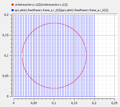 The Workspace2d generates references values between the ranges of the joints feasible motion. This values are then introduced into Angular position sources (from MSL ) and then connected to the RR component.