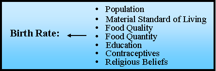 The Rates are being controlled by a so-called laundry list, a set of influencing factors that control the rates. Below is a table that provides a possible laundry list for the human birth rate in a population dynamics study: