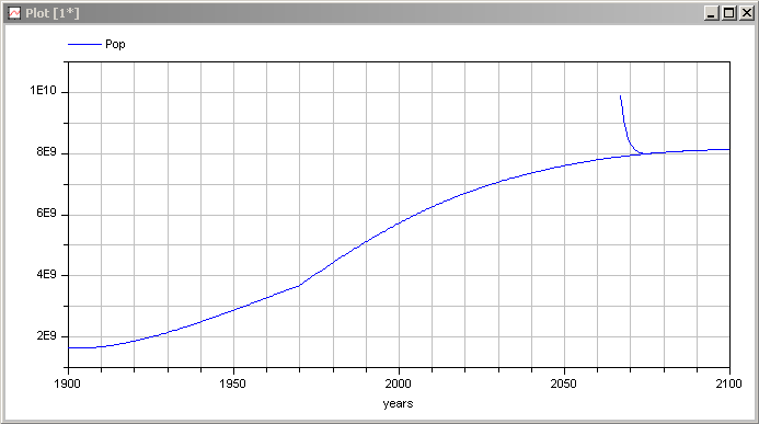 Simulate the model across 233 years with time reversal starting at year 200, i.e., we simulate the world model forward through time from the year 1900 until the year 2100, and then backward through time from the year 2100 until the year 2067. For this experiment, you need to set the simulation accuracy to 1e-10.
