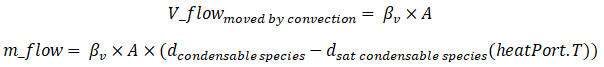 heatPort.TAs explained at the begining of this description, the fluid of the control volume is first cooled before condensation occurs. For the energy balance, this phase of sensible cooling is not counted as heat exchange by condensation because it has already been in the convective exchange model. The additional energy transferred from the fluid into the wall is the latent heat from condensation.
