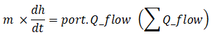 This component links the variation of the potential enthalpy (or temperature for an ideal gase) to heat flow balance in the opened lumped volume. It is the thermal inertia of a lumped volume