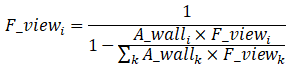 This functions computes the view factor (or called form factor) from the input Areas and with the Carrol's method. To summarize, this method allows to calculate the value of the view factor without knowing the detailed geometry (civil work) but just with the knowing of the value of all the areas. The Carroll's method requires the following hypotheses: