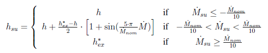 A discontinuity appears in the computed node enthalpy in case of flow reversal. This can be solved using a smooth transition between both parts of the equation. Eq. 2 is therefore transformed into: