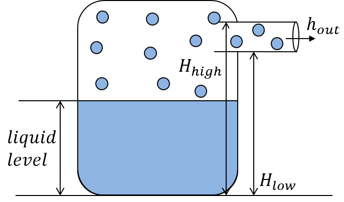 If the liquid level is between the lower and the upper end of the pipe, the outlet enthalpy is weighted on the liquid level in the pipe.