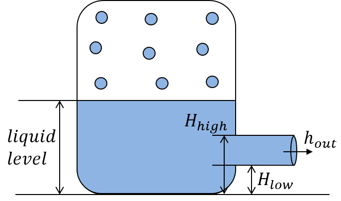 If the liquid level is between the lower and the upper end of the pipe, the outlet enthalpy is weighted on the liquid level in the pipe.