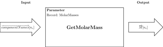 No governing equations. The function just searches the name vector in the molar masses record for the component names passed. Then it returns the molar mass defined in the molar mass vector in the record.