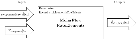 No governing equations, a for-loop is used to iterate through the vector of component names. The stoichiometric coefficients concerning the elementary composition of each component, served in a special record, are then multiplied by the molar flowrate of the component.