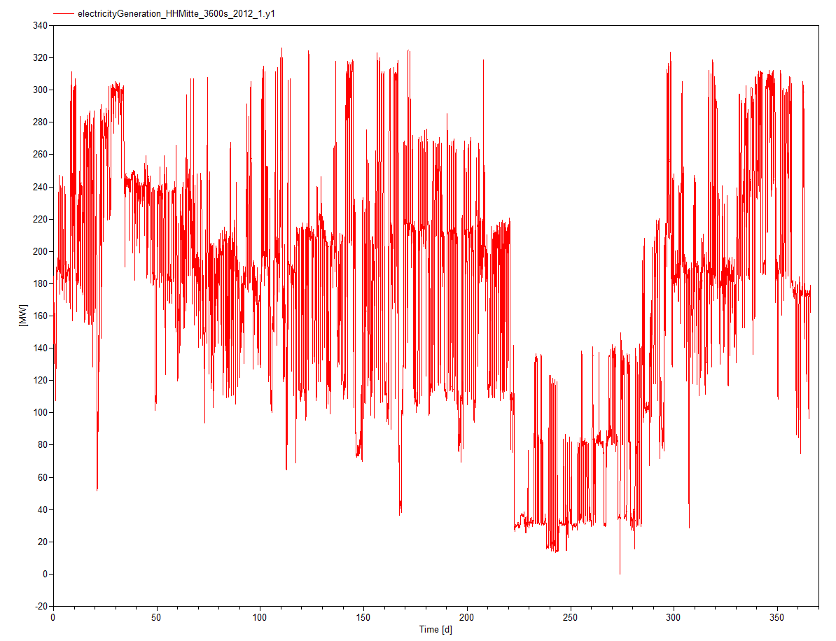 Total electricity generation in Hamburg-Mitte in the year 2012 in [W] with 60 minutes time resolution.