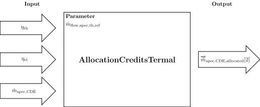 This function allocates the specific massflowrate of carbon dioxide equivalents of a coupled thermal and eletrical process to the thermal and electrical side based on the thermal credits method.