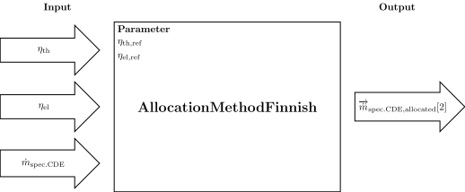 This function allocates the specific massflowrate of carbon dioxide equivalents of a coupled thermal and eletrical process to the thermal and electrical side based on the finnish method.